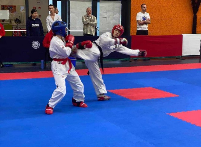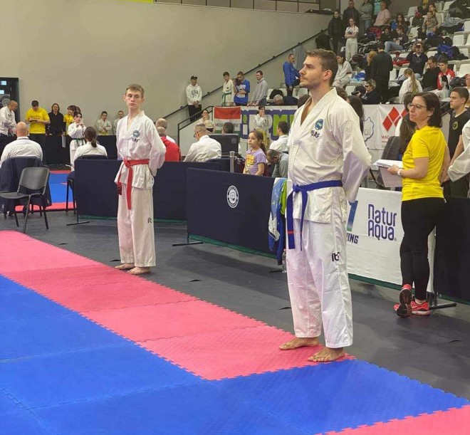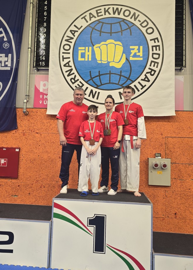 A nemrégen létrehozott küzdősport TKD szakosztályunk három versenyzője Vajky László edző kíséretében a szombati sikeres mérlegelés után vasárnap léptek tatamira.